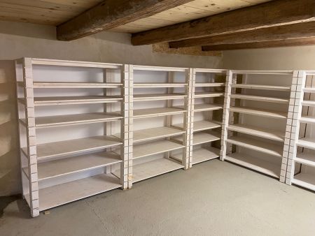 Nun schaffen wir es ein Update zum Hofladen zu geben. Boden ist gestrichen und die ersten Regale sind aufgebaut. Das Fenster ist eingesetzt., Nur die Tür konnten wir heute nicht einbauen, da Sie ohne Zylinder geliefert worden ist, was bei einer abgeschlossenen Tür leider den Einbau verhindert. Schloss angefordert, kommt hoffentlich bald.