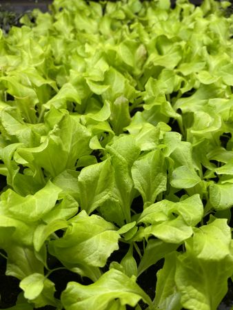 Der erste Kopfsalat "Amerikanischer Brauner" kommt nächste Woche in das Gewächshaus. Es werden 144 Salate die dann ab Ende März zur Ernte stehen.