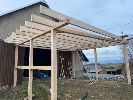 Die Trocknungszeit beim Hofladenbau nutzen wir um unseren Gemüsewaschplatz zu bauen, denn das Gemüse (insbesondere der Salat) muss frisch geerntet, kalt abgespült und dann bis zur Auslieferung in unserer Kühlkammer zwischengelagert werden. Es bleibt es länger frisch und knackig. Da man sowohl im Regen als auch in der prallen Sonne waschen muss, dachten wir uns ein Dach wäre nicht schlecht. Das ist daraus geworden. Dacheindeckung folgt......