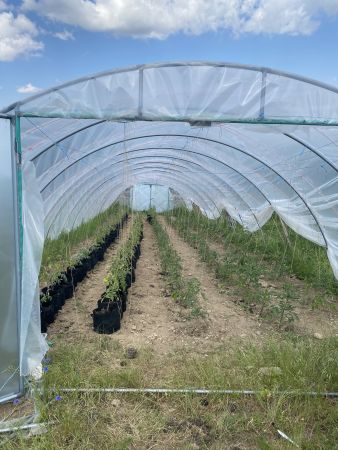 Unsere ca. 250 Tomatenpflanzen, hauptsächlich alte Sorten, stehen jetzt komplett im Tunnel. Teils im Boden, teils haben wir Sie in Stoffsäcke gepflanzt, die mit unserem abgelagerten Pferdemist gefüllt sind. Damit haben wir sehr gute Erfahrungen gemacht, gerade falls man einmal ein paar Pflanzen auf dem Balkon oder der Terrasse pflanzen möchte, bieten sich die Stoffsäcke an. Den noch freien Platz füllen wir diese Woche noch mit unseren Chillipflanzen......