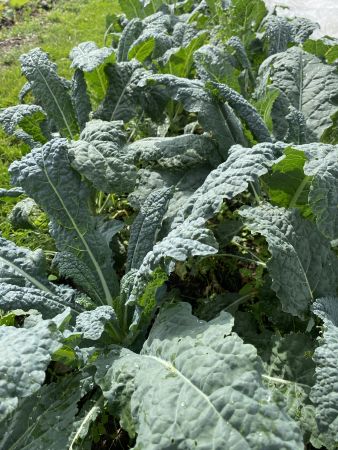 Ein weiterer Kohl für Herbst und Winter ist der Palmkohl. Im Gegensatz zum Grünkohl benötigt er keinen Frost, ist aber bis - 15 Grad frosthart. Palmkohl gilt als “Superfood.” Nicht nur hat er einen hohen Vitaminhaushalt mit über 100 mg Vitamin C pro 100 g Kohl – das ist doppelt so viel wie beim bekannteren Vitamin C-Lieferanten Orangensaft – er ist außerdem noch voller Vitamin B, Beta-Carotin, Calcium, Kalium und Ballaststoffen. Wer Federkohl und Schwarzkohl nach der Ernte stehenlässt, wird im Spätwinter und Frühjahr belohnt. Dann nämlich sprießen frische Triebe. Und irgendwann Blüten. Alles ist essbar