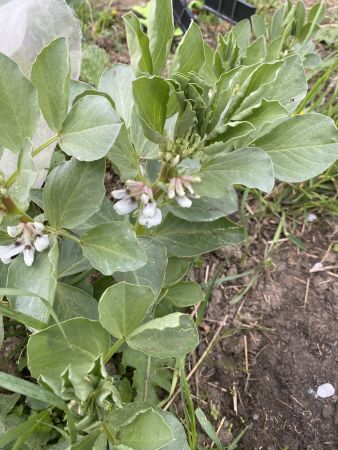 Der April und der Mai sind die Monate an denen die meisten Pflanzen vorgezogen und ausgepflanzt werden, damit im Sommer und im Herbst immer frisches Gemüse in unseren Abokisten und bei unseren Restaurants verfügbar ist. Diese Woche je 200 Weißkohl(9 Satz), Wirsing(3 Satz), Rotkohl (1 Satz) und 400 Buschbohnen(6 und 7 Satz),, 350 Eichblattsalate(11 Satz), 400 Rote Beete(2 Satz) 400 Mangold(5 Satz) und 500 Spinatpflanzen(3 Satz). Zur Erläuterung: Da wir unsere Kulturen mehrfach gestaffelt anbauen nummerieren wir die Anpflanzungen durch. Dazu die Aussaat von Möhre, Radieschen, Rettich und Kohlrübe. Ausgepflanzt haben wir gestern die ersten 200 Buschbohnen und rund 700 Kohlrabi. Wie auf dem Bild zu sehen, blüht jetzt der erste Satz von 200 Dicke Bohnen die wir Ende Februar bereits auspflanzt haben. Aktuell haben wir rund 1000 Dicke Bohnenpflanzen auf den Feldern stehen