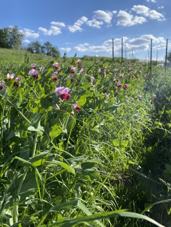 Nach den Dicken Bohnen, den Zuckerschoten fangen jetzt auch die Schalerbsen an zu blühen. Wir hoffen auf eine reiche Ernte.