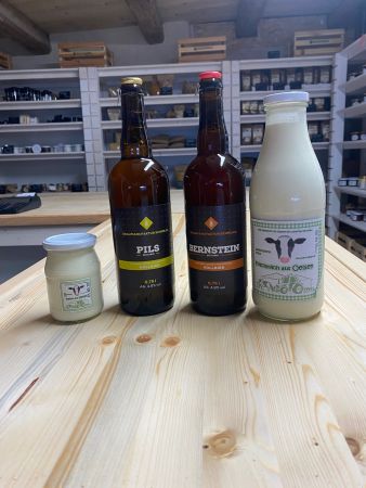 Für die ganze Familie. Unser Bio-Bier aus Schmilka sowie Milch und Joghurt -Quark kommt nächste Woche- aus Oelsen. Aus pasteurisierter Milch unter Verzicht von gentechnisch veränderten Futtermitteln und Saatgut hergestellt, eine ideale Ergänzung zu unseren Rohmilchprodukten. Und alles Regional.