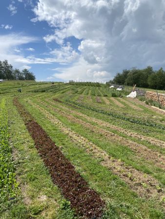 So sieht es aktuell aus(von hinten nach vorne). Der Salat aus den Gewächshau ist fast komplett geerntet, jetzt treffen wir die Vorbereitungen für die Tomatenpflanzung. Auf Parzelle 1 steht noch die Gründüngung die in den nächsten Wochen eingearbeitet wird. da wir die Beete für unsere Jungpflanzen brauchen. Die Parzellen 2,3,4 mit je 17 Beeten a 20 Meter sind komplett belegt. Hier kann die Ernte in den nächsten Wochen beginnen z.B. mit Dicke Bohnen, Kohlrabi, Zuckerschote, Mangold usw. Links im Bild die Parzelle 5(ebenfalls komplett belegt) und die Parzelle 6 mit Brokkoli, Spitzkohl, Wirsing und Rosenkohl und die restliche Gründüngung wird ebenfalls in den nächsten Wochen eingearbeitet. Und es hat sogar mal marginal geregnet.
