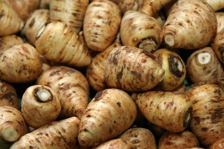 Die Kerbelrübe ist ein heute fast vergessenes Gemüse, das auch unter den Namen Knollenkerbel, Nappenmöhre oder knolliger Kälberkropf bekannt ist. Die erste schriftliche Erwähnung fand der Knollenkerbel im Jahre 1601. Zu dieser Zeit wurde er bereits auf den Wiener Gemüsemärkten angeboten. Die Kerbelrübe gehört zu den Doldenblütlern, genau wie die Pastinake und die Karotte. Sie ist in Mitteleuropa heimisch, es gibt jedoch auch eine sibirische Kerbelrübe, die eine gelbe Schale besitzt. Die wilde Kerbelrübe kommt außerdem verstreut auf feuchten Wiesen in Deutschland und Österreich vor. Unsere heimische Gemüse-Kerbelrübe bildet bis zu zehn Zentimeter lange, stumpfe und verdickte Wurzeln aus, die außen hellbraun und im Inneren weißlich-gelb gefärbt sind. Das Laub ist zart gefiedert und erinnert stark an Möhrenblätter. Der Geschmack der rohen Kerbelrübe ist pastinaken-artig, knackig und saftig. Doch nur im gekochten Zustand entfaltet sie ihren einzigartigen, kräftigen Geschmack nach Maronen, der Liebhabern das Herz höher schlagen lässt.