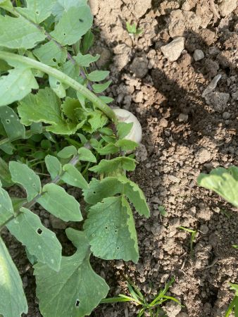 Damit man mal sehen kann, wie sich die Witterung bei uns auswirkt, Den Rettich den wir jetzt gerade im ersten Step geerntet hat, heißt Ostergruß..........