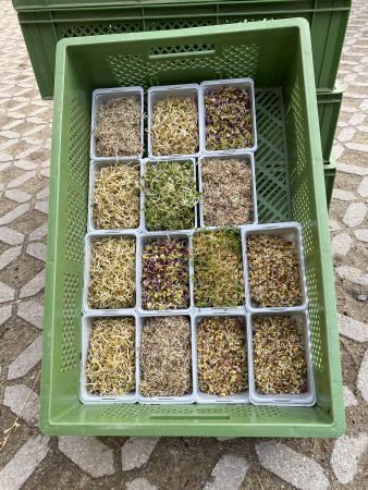 Frische Sprossen ideal für Salate. und als Toping für Gerichte Heute unter anderem Alfalfa, Bockshornklee, Rettich, Sprossenmix. Super Ergänzung zu unseren Micorgreens.