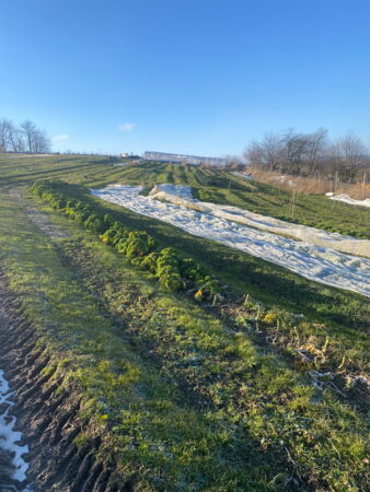 Hart gefroren aber schneefrei. Ideal um ab morgen unseren mineralisierten, mit effektiven Microorgansimen versetzten, abgelagerten Pferdemist auf die nicht belegten Beete zu bringen. Dann brauchen wir, sobald es frostfrei ist, diesen nur noch mit der Kreiselegge einarbeiten und sind dann betriebsbereit für die Frühjahrspflanzungen. Unser Wintergemüse(Grünkohl, Schwarzkohl und Porree u.a.) hält sich trotz der Kälte der letzten Wochen wacker und wir dann bald geerntet.